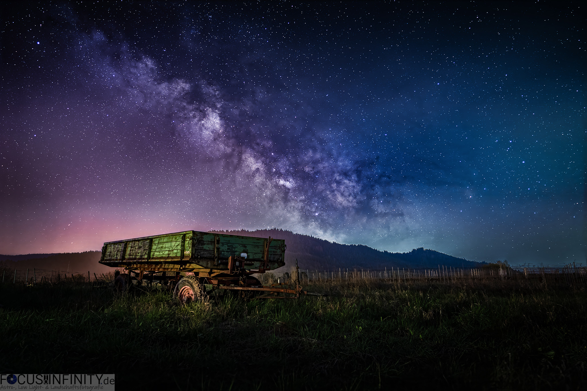 An der vortags ausgekundschafteten Location kam ich um 04:30 Uhr an. Exakt an dieser Stelle hatte ich bereits im Frühjahr 2023 ein tolles Landschafts-Astrofoto geschossen und einen Stapel Brennholz in Szene gesetzt.
